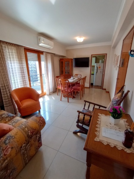 Ubicado en el segundo piso, al frente con balcón. Departamento de tres ambientes, equipado con heladera con freezer, lavarropa, microonda, cable y conexión a Wi-Fi. Dispone de cocina-lavadero, un dormitorio con dos camas simples y en el segundo, somier doble; living-comedor amplio, toilette de recepción así como un baño completo con bidet. Se incluye ropa de cama y toallas.