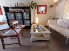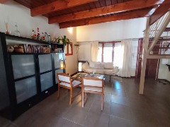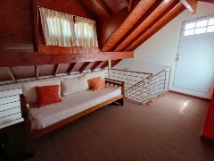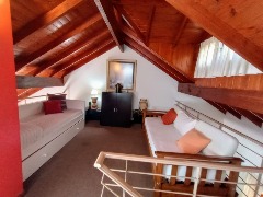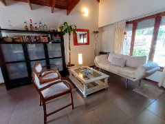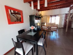 El chalet dispone de un pequeño jardín, parrilla y espacio para un vehículo en un área de estacionamiento descubierto. La propiedad cuenta con dos cómodos dormitorios: uno con cama King Size y el otro con somier doble. Además, cuenta con un altillo equipado con dos camas simples. El amplio living-comedor integra una cocina moderna y funcional equipada con heladera con frezer, microonda, lavarropa.