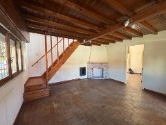 Planta Baja: Al ingresar, se encuentra un amplio salón de estar-comedor con pisos cerámicos y vigas de madera expuestas en el cielorraso. Un pasillo de distribución da acceso a un baño completo de generosas dimensiones, así como a dos dormitorios con pisos de madera y placard empotrados, ambos con vista al jardín. La cocina-comedor diario cuenta con doble acceso, y el lavadero está completamente equipado.