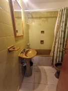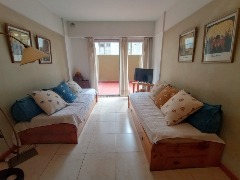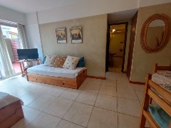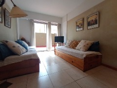 Ubicado en el primer piso, lateral con patio. Departamento de dos ambientes, equipado con heladera con freezer y conexión a Wi-Fi. Dispone de dos camas simples en el dormitorio y dos cama simples + carro cama en el living-comedor, así como un baño completo con bidet. No se incluye ropa de cama ni toallas.