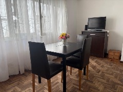 Ubicado en el segundo piso, al frente con balcón. Departamento de tres ambientes, equipado con heladera con freezer, lavarropa, microonda, cable y conexión a Wi-Fi. Dispone de cocina-lavadero, un dormitorio con dos camas simples y en el segundo, somier doble; living-comedor amplio, toilette de recepción así como un baño completo con bidet. Se incluye ropa de cama y toallas.