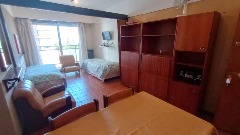 Ubicado en el séptimo piso, lateral, este atractivo departamento de un ambiente cuenta con balcón y está equipado con microondas, heladera, señal de DIRECTV prepago y conexión a Wi-Fi. Dispone de dos somier, así como un baño completo con bidet. No se incluye ropa de cama ni toallas.