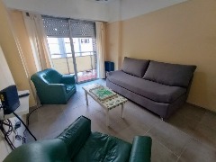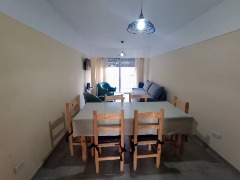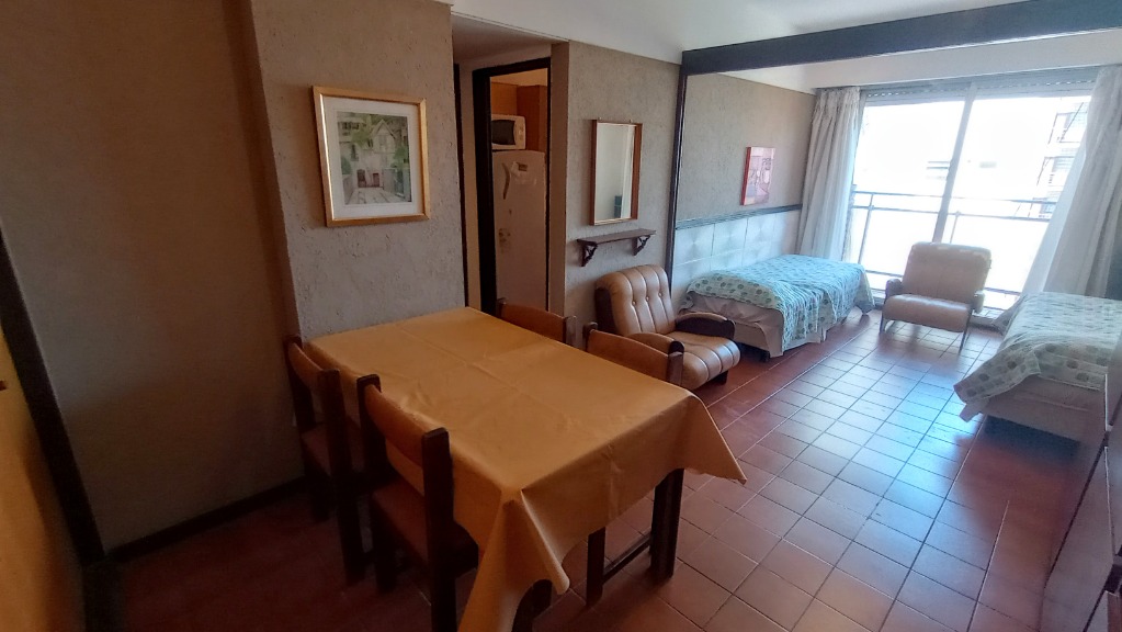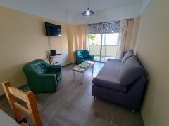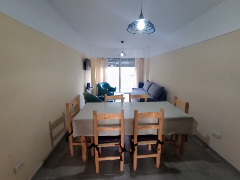Ubicado en el tercer piso, al frente con balcón. Departamento de tres ambientes, equipado con heladera con freezer, lavarropa, microonda, cable y conexión a Wi-Fi. Dispone de cocina-lavadero, un dormitorio con tres camas simples + carro cama y en el segundo, somier doble; living-comedor amplio, toilette de recepción así como un baño completo con bidet. No se incluye ropa de cama ni toallas.