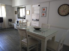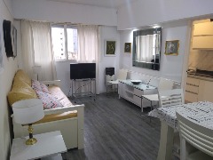Ubicado en el segundo piso, al frente con balcón. Departamento de tres ambientes, equipado con heladera con freezer, lavarropa, microonda, cable y conexión a Wi-Fi. Dispone de cocina-lavadero, un dormitorio con dos camas simples y en el segundo, somier doble; living-comedor amplio, toilette de recepción así como un baño completo con bidet. Se incluye ropa de cama y toallas.