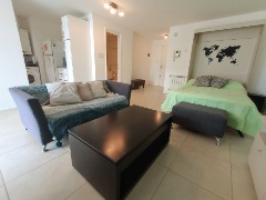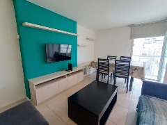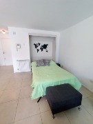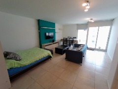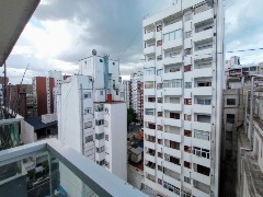 Ubicado en el octavo piso, contrafrente con balcón. Departamento de un ambiente, equipado con heladera con freezer, lavarropa, microonda y conexión a Wi-Fi. Dispone de una cama simple, así como un baño completo con bidet. No se incluye ropa de cama ni toallas.