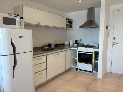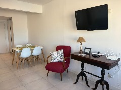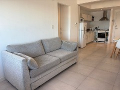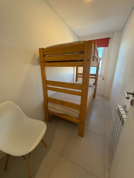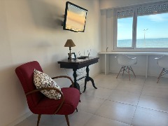 Ubicado en el segundo piso, al frente con balcón. Departamento de tres ambientes, equipado con heladera con freezer, lavarropa, microonda, cable y conexión a Wi-Fi. Dispone de cocina-lavadero, un dormitorio con dos camas simples y en el segundo, somier doble; living-comedor amplio, toilette de recepción así como un baño completo con bidet. Se incluye ropa de cama y toallas.