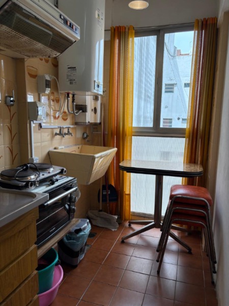 Departamento de 1 AMB, lateral con balcón, muy luminoso. Piso 7. Eléctrico, con posibilidad de instalar el gas, ya que la obra en el edificio fue realizada según última Ordenanza Municipal. Cocina separada con ventilación natural y lavadero semi-integrado. Baño completo en estado original.
