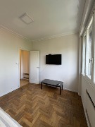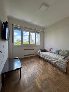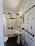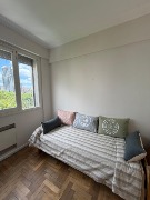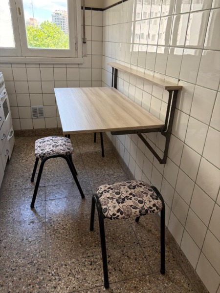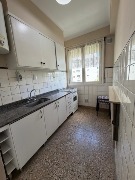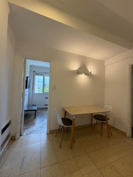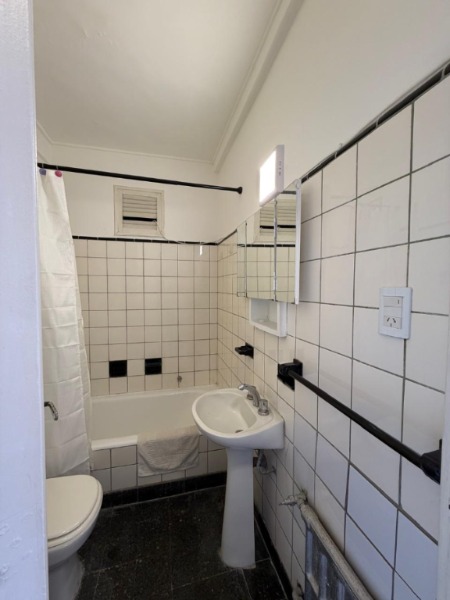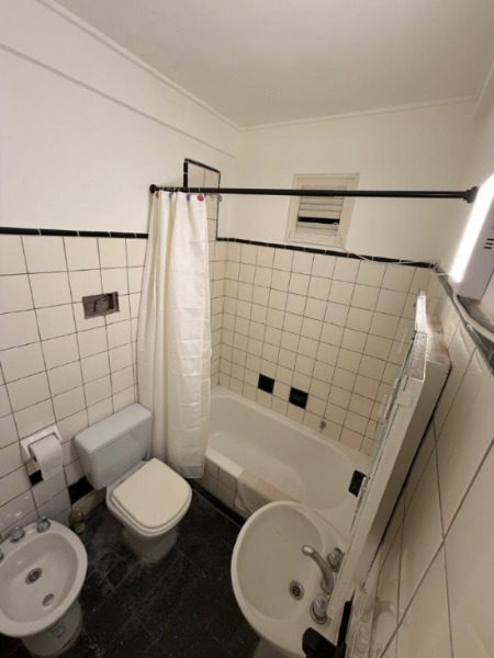 El departamento cuenta con un dormitorio de dimensiones confortables con pisos de parquet, que se conecta a un espacio transformado en comedor. Cocina separada. Conexión para lavarropas. El baño está completo, con bañadera, bidet y accesorios en estado original, muy bien conservado.