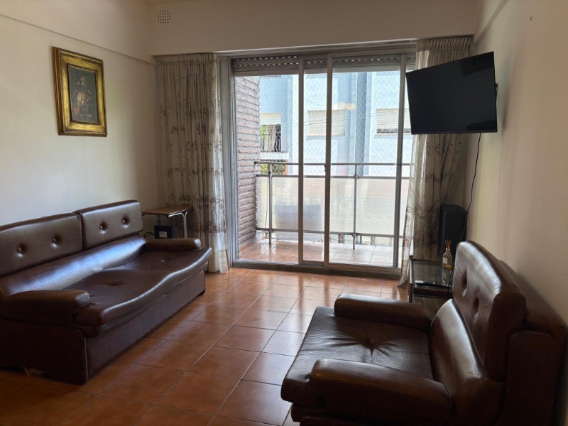 Ubicado en el segundo piso, al frente con balcón. Departamento de tres ambientes, equipado con heladera con freezer, lavarropa, microonda, cable y conexión a Wi-Fi. Dispone de cocina-lavadero, un dormitorio con dos camas simples y en el segundo, somier doble; living-comedor amplio, toilette de recepción así como un baño completo con bidet. Se incluye ropa de cama y toallas.